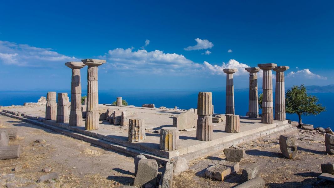 Serbest zamanın ardından dileyen misafirlerimiz traktörlerle bağbozumuna katılarak bağlardan üzüm toplayabilir, köylü kadınların hazırladığı meşhur domates reçellerinden ve adada yetiştirilen farklı üzüm türlerinden elde edilen şaraplardan satın alabilirler. Deniz kıyısında çaylarımızı yudumladıktan ve adanın muhteşem reçellerinin tadına baktıktan sonra rehberimizin belirleyeceği saatte buluşarak feribotla Geyikli İskelesi’ne geçiyoruz. Ardından Assos (Behramkale)’a doğru hareket ediyoruz. Behramkale Köyü’ne vardıktan sonra köy girişinde aracımızdan inip, 238 metre yükseklikteki andezit kayaç üzerine kurulmuş olan Assos Antik Kenti’nin akropolüne çıkıyoruz. Rehberimizin anlatımı eşliğinde, antik dönemde Dor düzeniyle inşa edilmiş Athena Tapınağı’nı görüyoruz. Verilecek serbest zamanda köy içerisinde meşhur fincanda pişen sakızlı Türk kahvesini yudumlayabilir veya alışveriş yapabilirsiniz.