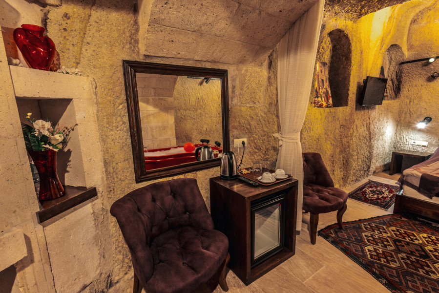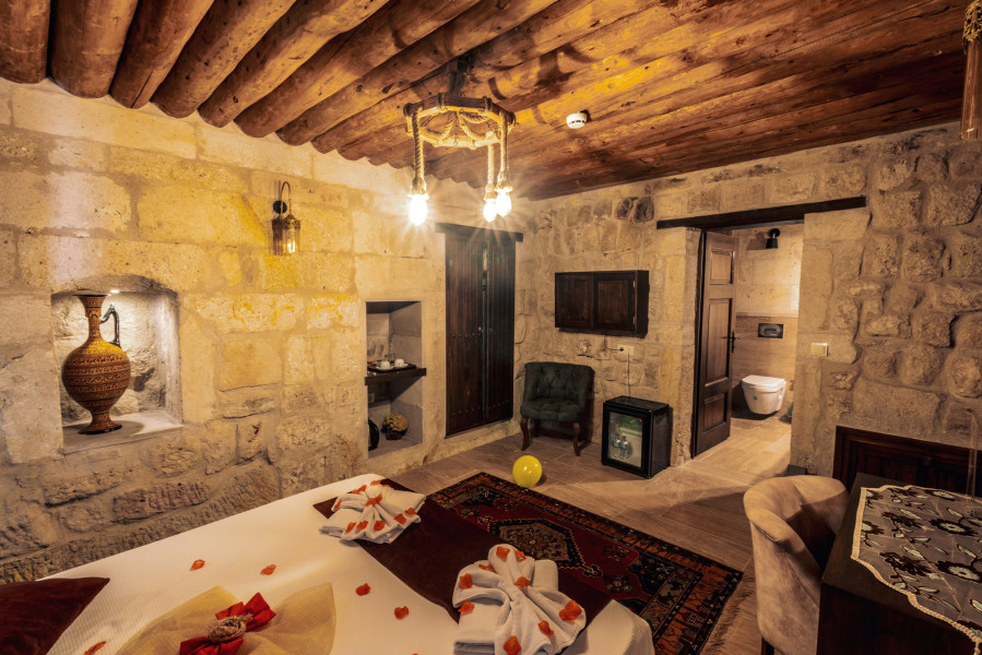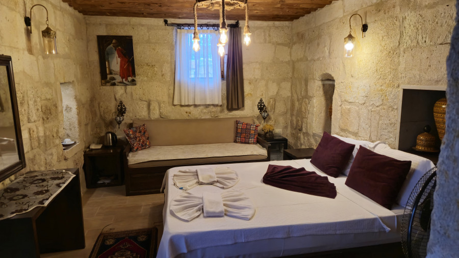 Bu kadim bölgenin kalbi Nevşehir’in Ürgüp ilçesindedir. Şehir merkezine çok yakın konumda bulunan, karşısında Ürgüp Belediyesi’ne ait otopark, arkasında ise eski Ürgüp evleri, peribacaları ve Kadın Kalesi bulunan tarihi ve tescilli bir yapıdır. Aslına uygun şekilde restore edilmiş olan bu butik otelimiz; konuklarını “müşteri” değil, “misafir” olarak gören ve buna uygun bir anlayışla ağırlamaya özen gösteren samimi bir işletmedir.