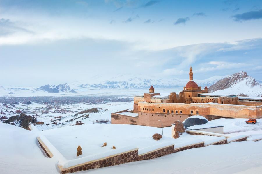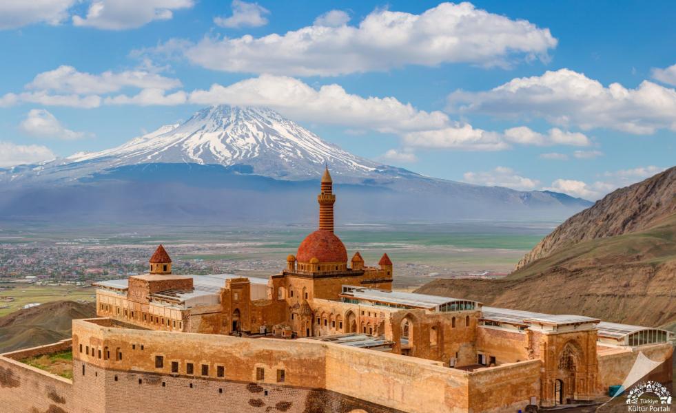 Sabah otelde alacağımız kahvaltının ardından Van Gölü kıyılarındaki eşsiz manzaraları geride bırakarak ilk durağımız Bendi Mahi Çayı üzerindeki Muradiye Şelalesi oluyor. Kısa bir fotoğraf molamızın ardından, ülkemizin en yüksek geçitlerinden biri olan Tendürek Dağı Geçidi üzerinden ilerleyerek Doğubayazıt’a ulaşıyoruz. Burada, yapımı yaklaşık bir asır süren ve Osmanlı’nın Lale Devri’ndeki son büyük anıt yapılarından biri olan İshak Paşa Sarayını rehberimizin anlatımları eşliğinde keşfediyoruz. Ziyaretimizin ardından öğle yemeği molamızı veriyoruz.